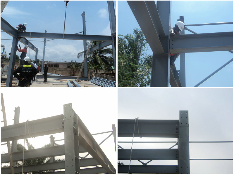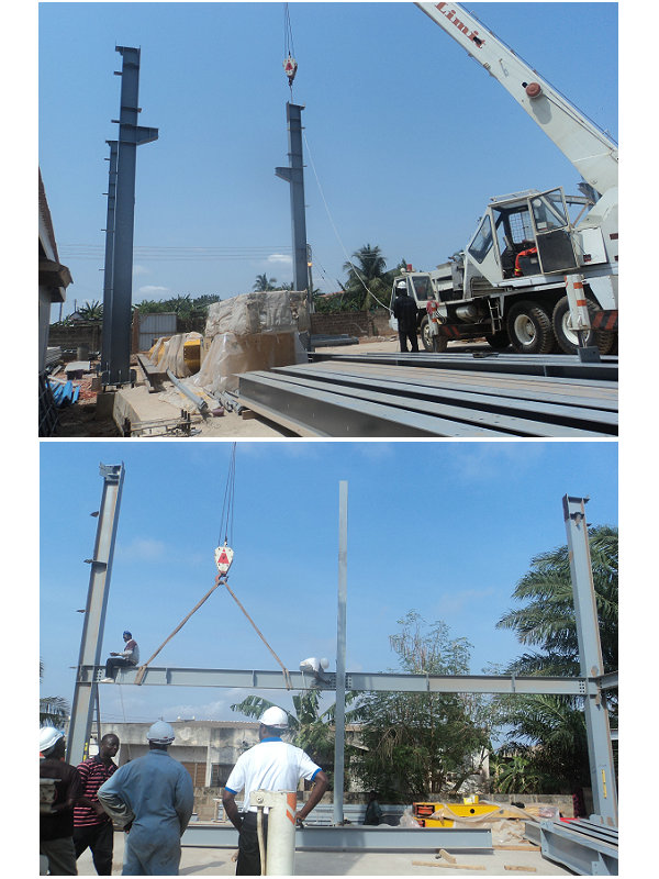 加納車(chē)間位于非洲國(guó)家,此車(chē)間設(shè)計(jì)有10噸吊機(jī),主要用于生產(chǎn)起吊使用。車(chē)間的安裝需要先裝好鋼柱,然后裝行車(chē),最后才是封頂,這樣才不會(huì)影響吊機(jī)的安裝。此車(chē)間由勝邦鋼構(gòu)公司派遣技術(shù)人員指導(dǎo)安裝,此車(chē)間的安裝時(shí)間僅用了1個(gè)月的時(shí)間。以下是建筑的部分安裝圖片展示: